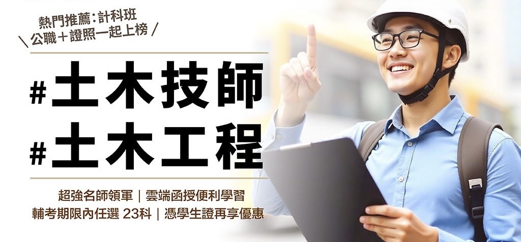 115年新班全新開課免費試聽!土木金榜創佳績,到台中志聖報名憑證享超值優惠價再享驚喜好禮!二人以上團報最高再折5000元